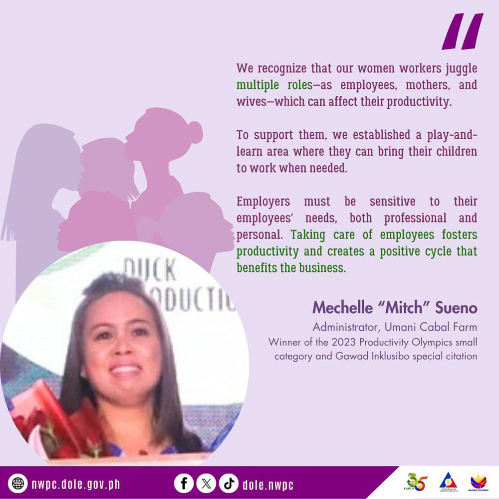- Establish a robust data and information of women workers’ participation in the conceptualization and implementation of policies and programs on wages, incomes and productivity.