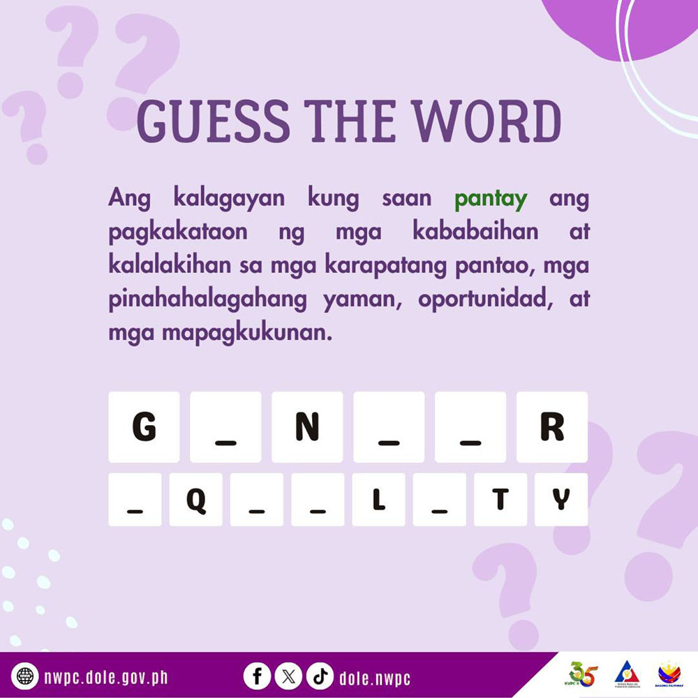 To this end, the National Wages and Productivity Commission fervently advocates the Gender and Development (GAD) perspective of contributing to the continuous undertaking of nation-building and national development.