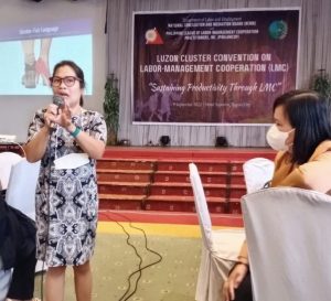 NWPC Deputy Executive Director Jeanette T. Damo delivered a presentation on “Building Blocks to a Productive Workplace” during the Luzon Cluster Convention on Labor Management Cooperation in Baguio City on September 9, 2022.