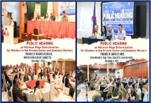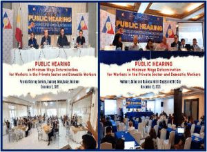 The RTWPB-X recently conducted a series of public hearings on minimum wage determination covering workers in the private sector and domestic wThe public hearings were held in Ozamiz City, Misamis Occidental; Iligan City; Malaybalay City, Bukidnon; and Cagayan de Oro City on December 1, 2, 9, and 10 respectively.
